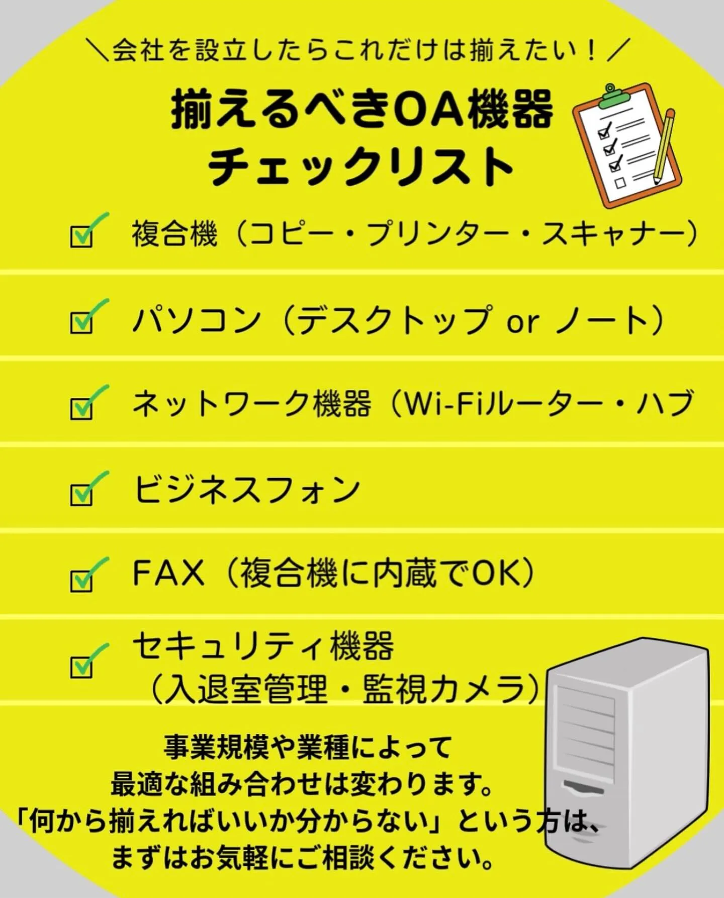 まず揃えておくと安心な「OA機器の基本セット」をまとめました。