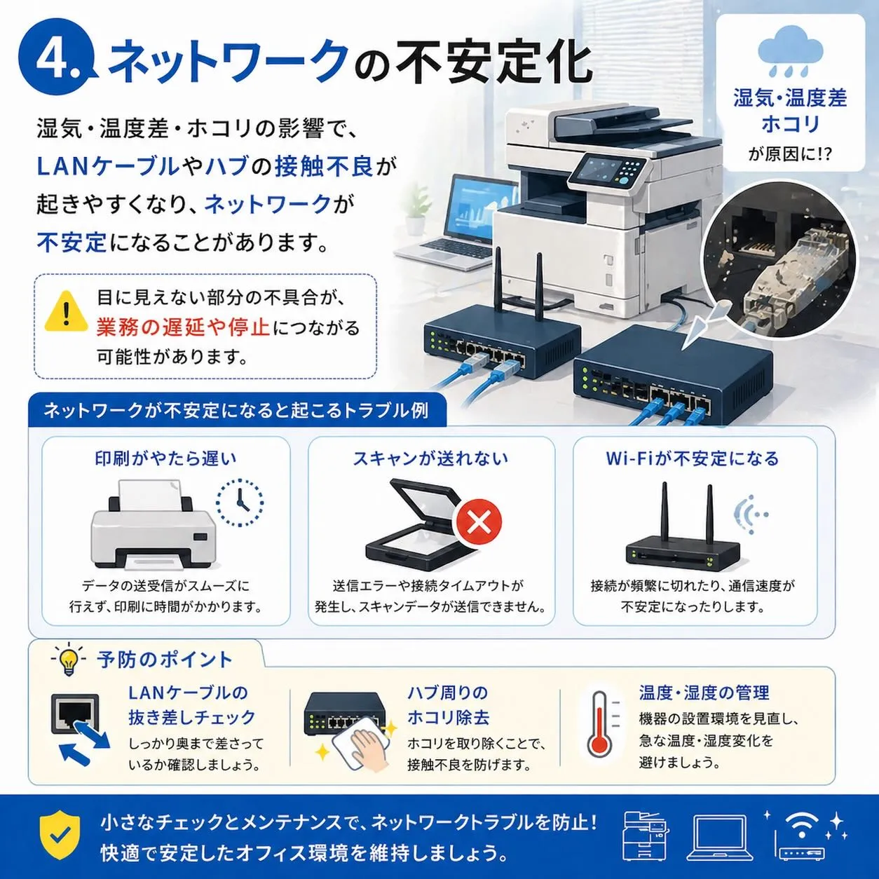 LANケーブルやハブに“接触不良”が起きやすい時期です。